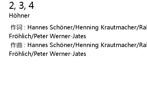 | [00:00.000] | zuo qu : Hannes Sch ner Henning Krautmacher Ralf Rudnik Jan Peter Fr hlich Peter WernerJates |