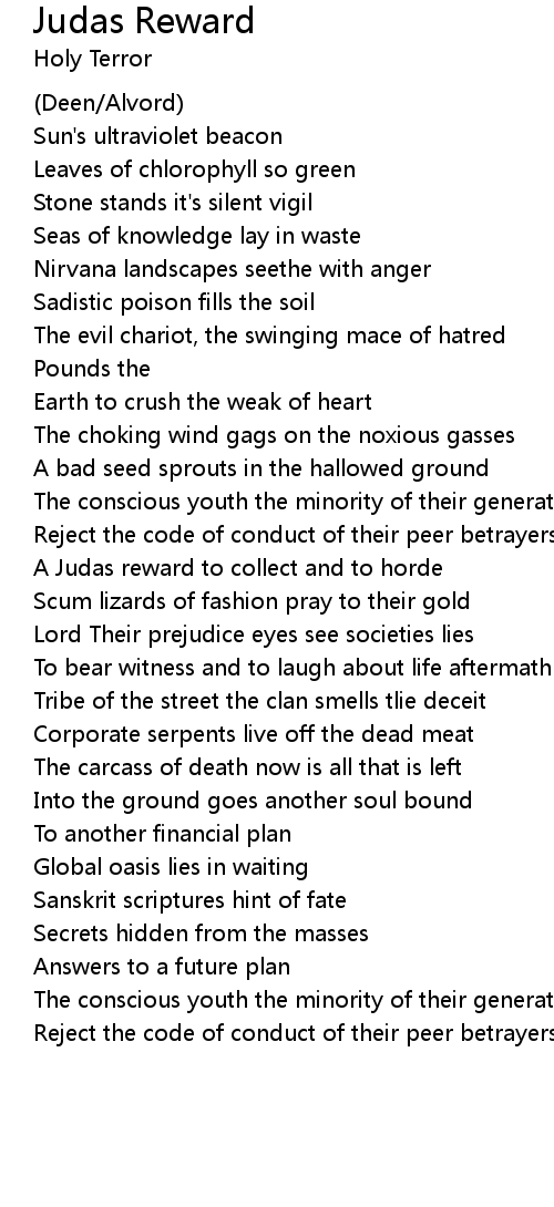 A Judas reward to collect and to horde |