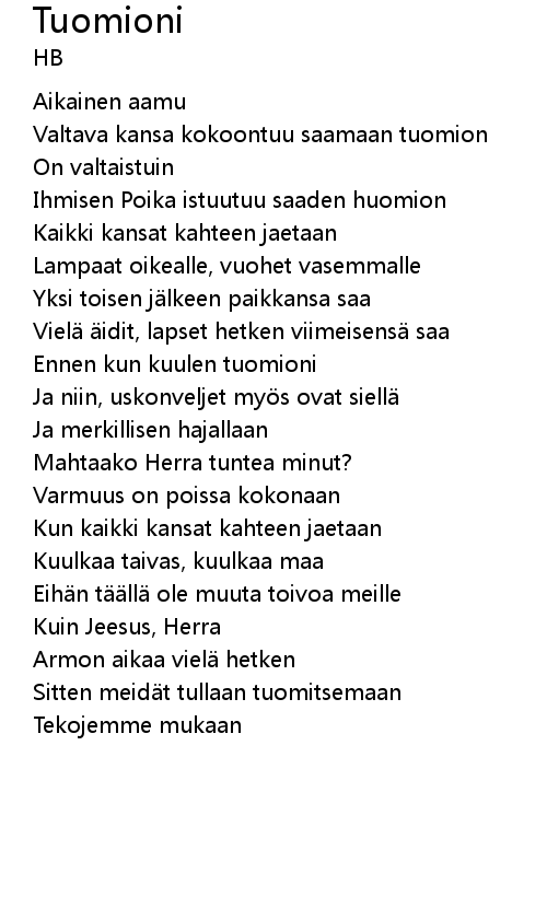 | 歌曲 | Tuomioni |