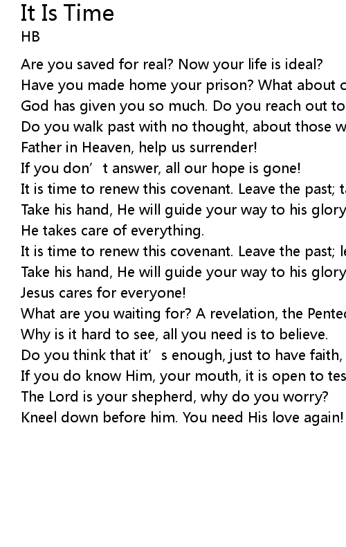 | 歌曲 | It Is Time |