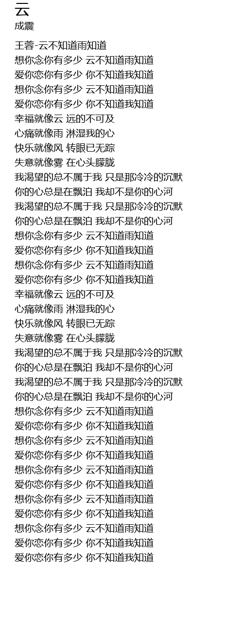 | [04:15.83] | 想你念你有多少 云不知道雨知道 |