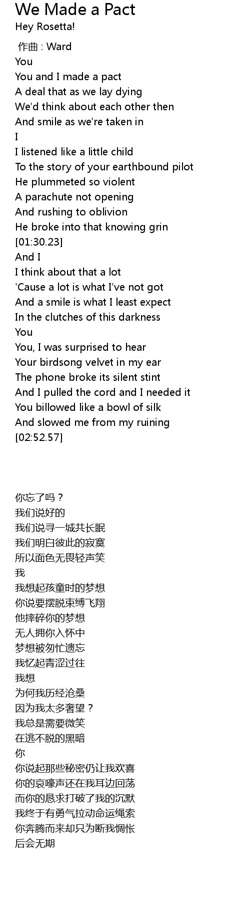 | 歌曲 | We Made a Pact |