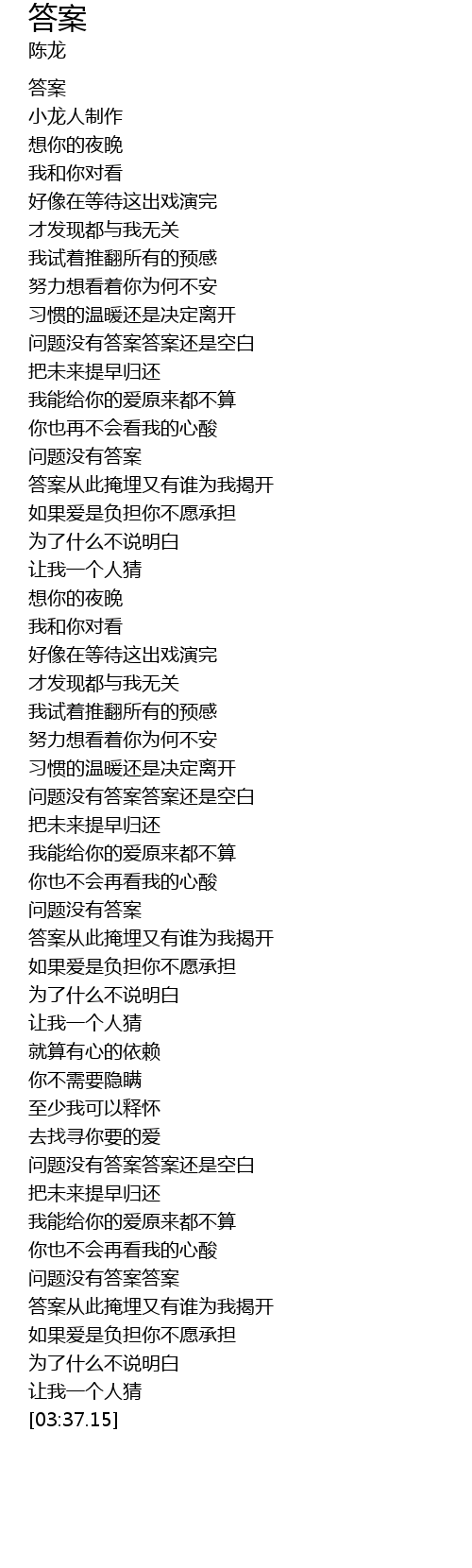 | [03:16.64] | 问题没有答案答案 |