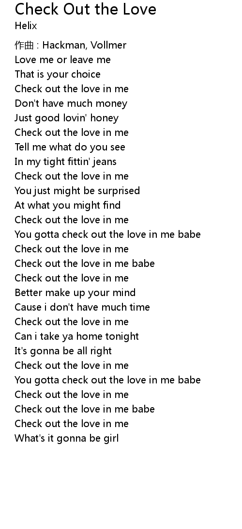 | You gotta check out the love in me babe | |