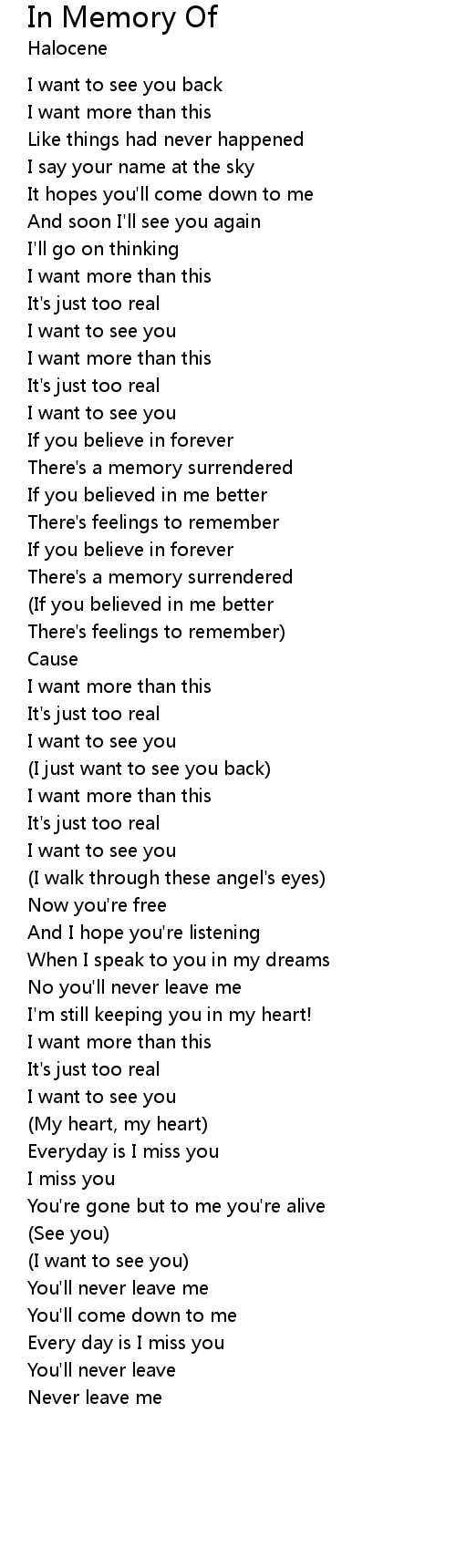 歌曲 In Memory Of