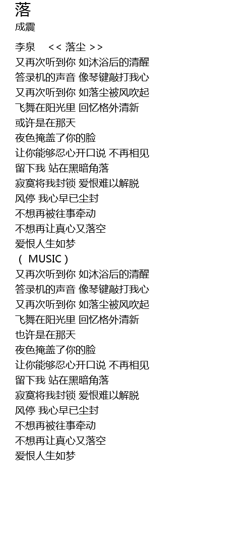 | [02:39.00] | 又再次听到你 如落尘被风吹起 |