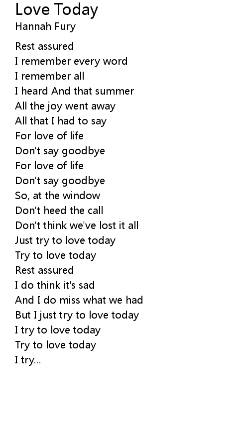 | But I just try to love today | |