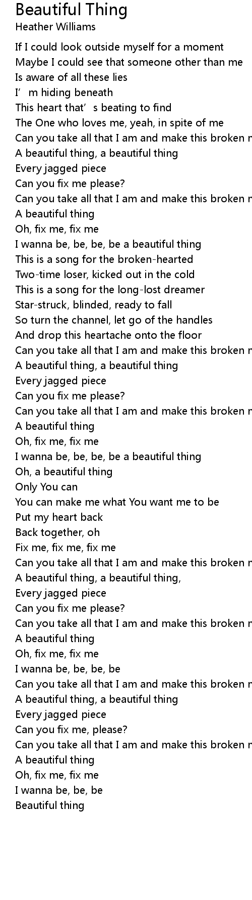 | A beautiful thing, a beautiful thing, | |