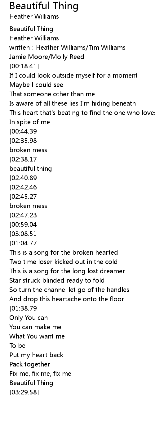 | [03:28.18] | Beautiful Thing |