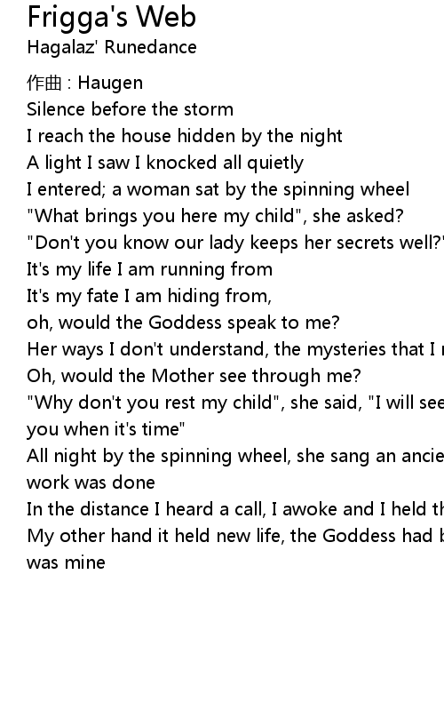 | All night by the spinning wheel, she sang an ancient tune and in the morn' her work was done | |