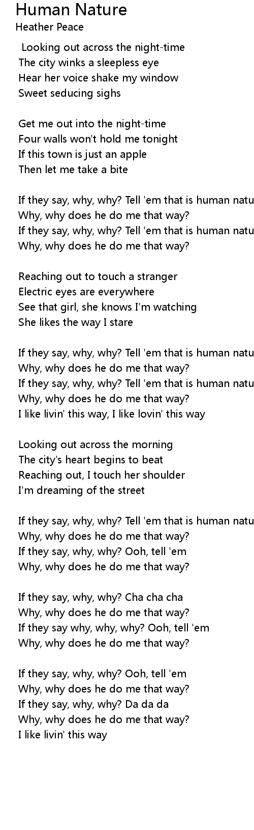 If they say, why, why? Tell 'em that is human nature |