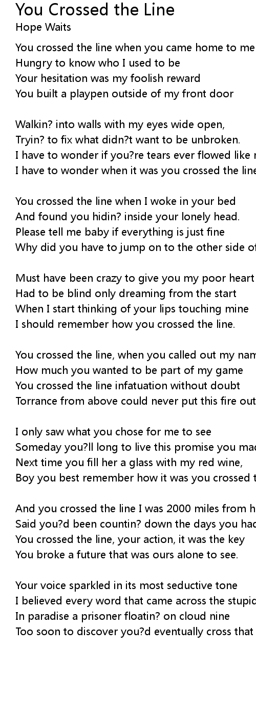 Too soon to discover you?d eventually cross that line |