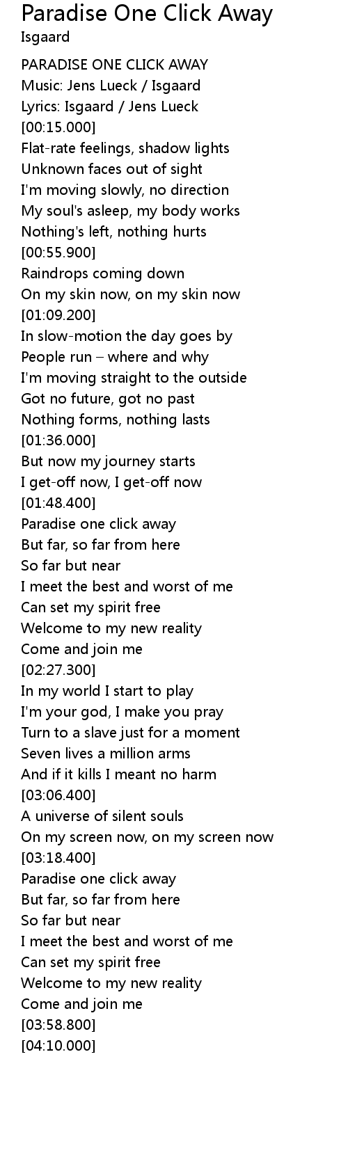 | [03:21.800] | Paradise one click away |