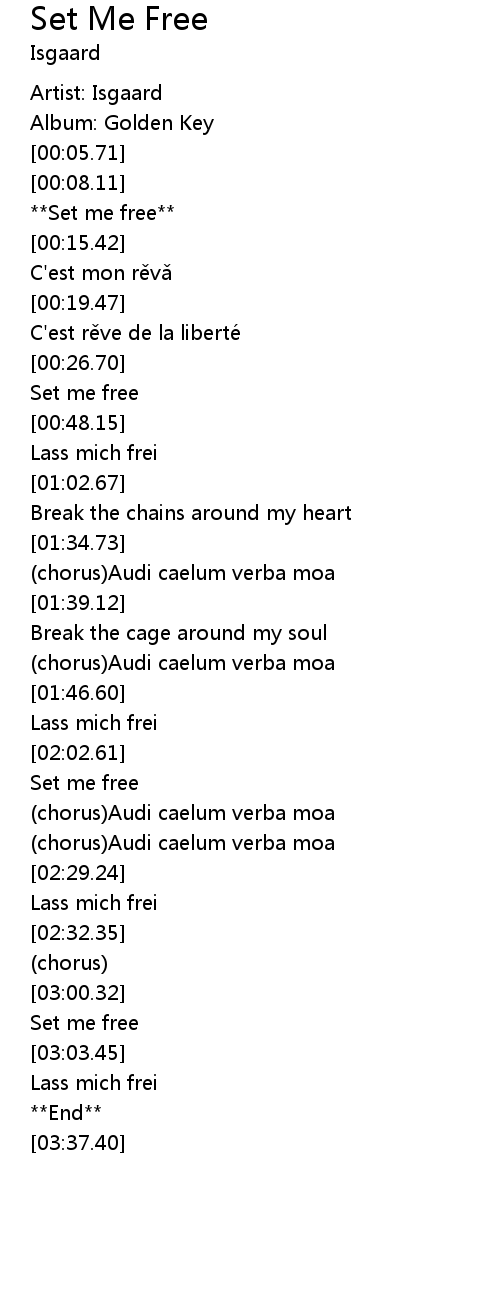 | [02:26.79] | (chorus)Audi caelum verba moa |