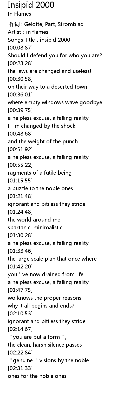 | [00:00.90] | Artist: in flames |