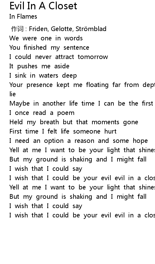 | [02:12.17] | I wish that I could be your evil evil in a closet |