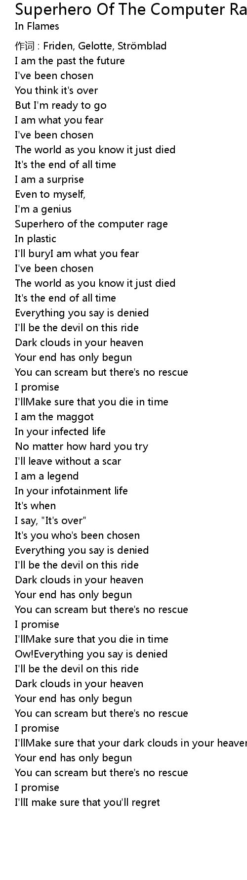 | 歌曲 | Superhero Of The Computer Rage |