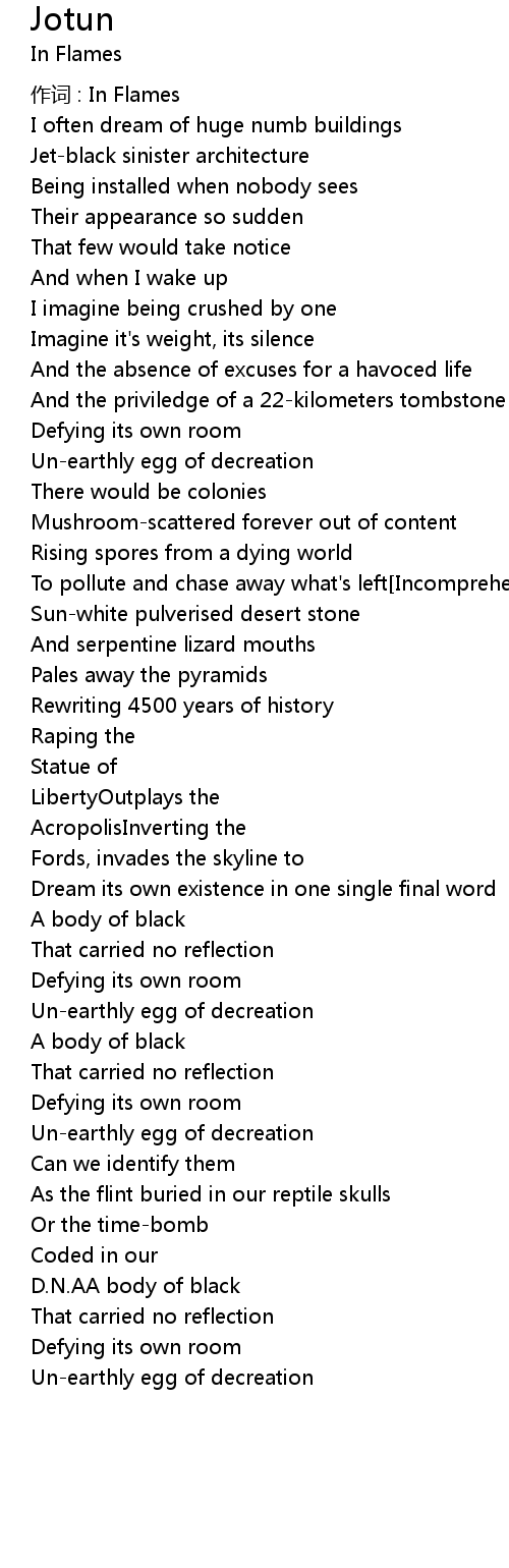 | 作词 : In Flames | |