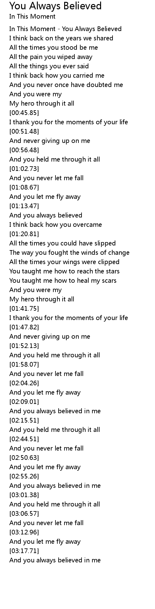 [00:01.27] In This Moment - You Always Believed