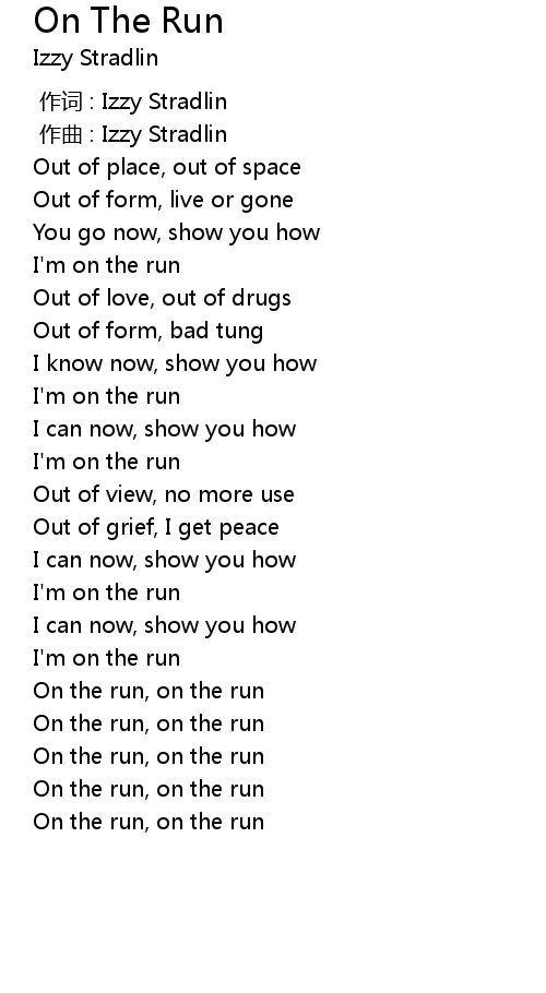 | [02:40.71] | On the run, on the run |