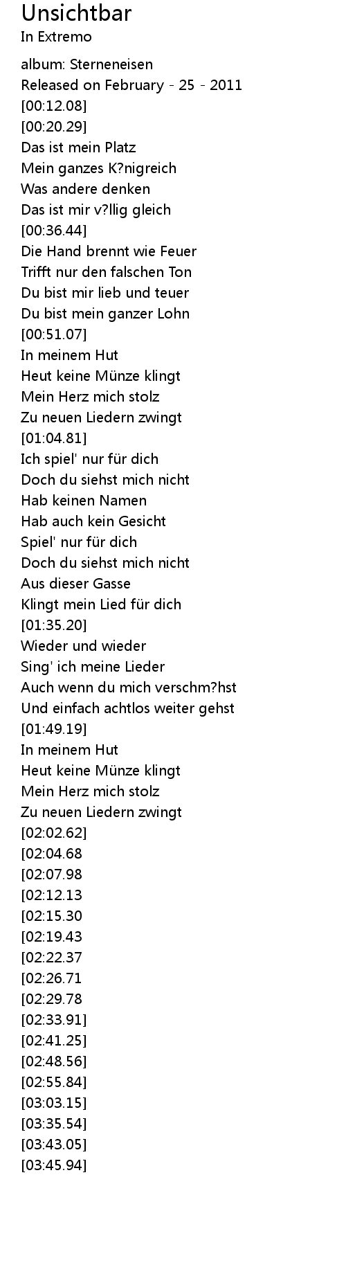 | [03:14.02][02:12.13] | Hab keinen Namen |