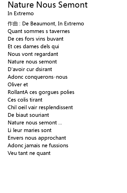 | 歌曲 | Nature Nous Semont |