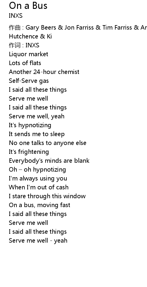 | zuò qǔ : Gary Beers Jon Farriss Tim Farriss Andrew Farriss Michael Hutchence Ki | |