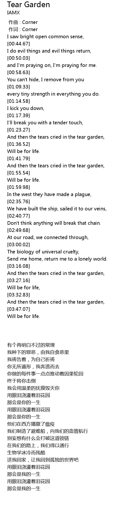 | [03:17.96] | And then the tears cried in the tear garden, |
