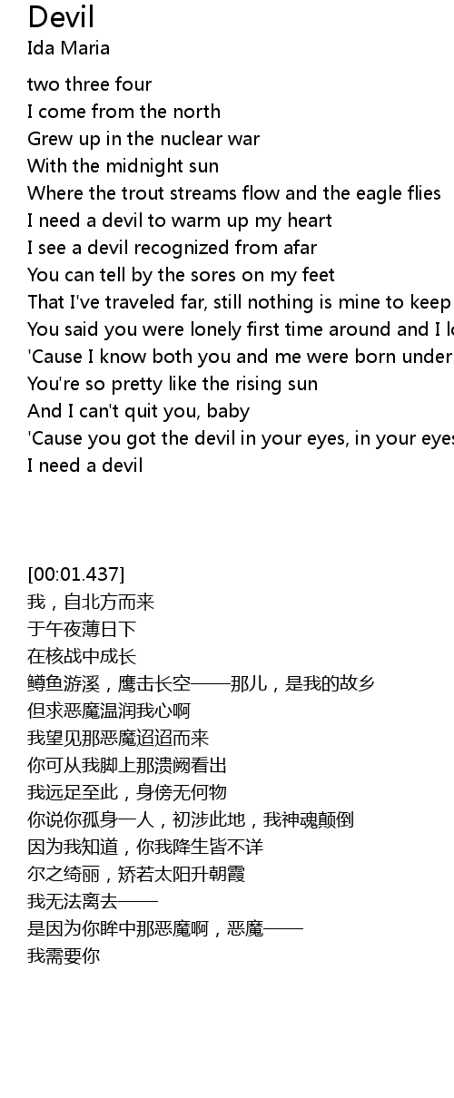 I need a devil to warm up my heart |