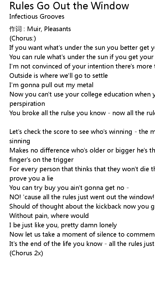 | You broke all the rulse you know - now all the rules go out the window! (Chorus) | |