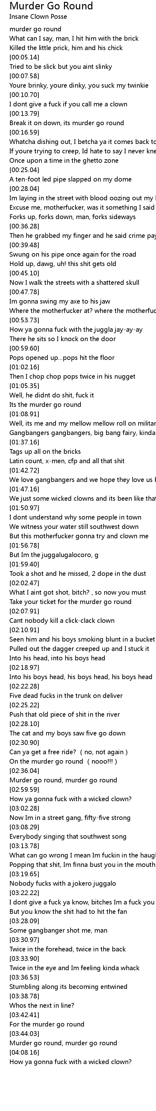 | [03:00.34] | How ya gonna fuck with a wicked clown? |