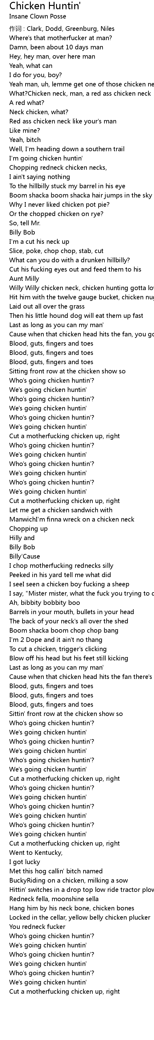 | 歌曲 | Chicken Huntin' |