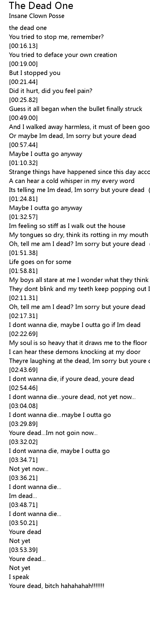 | [02:56.71] | I dont wanna die... youre dead, not yet now... |