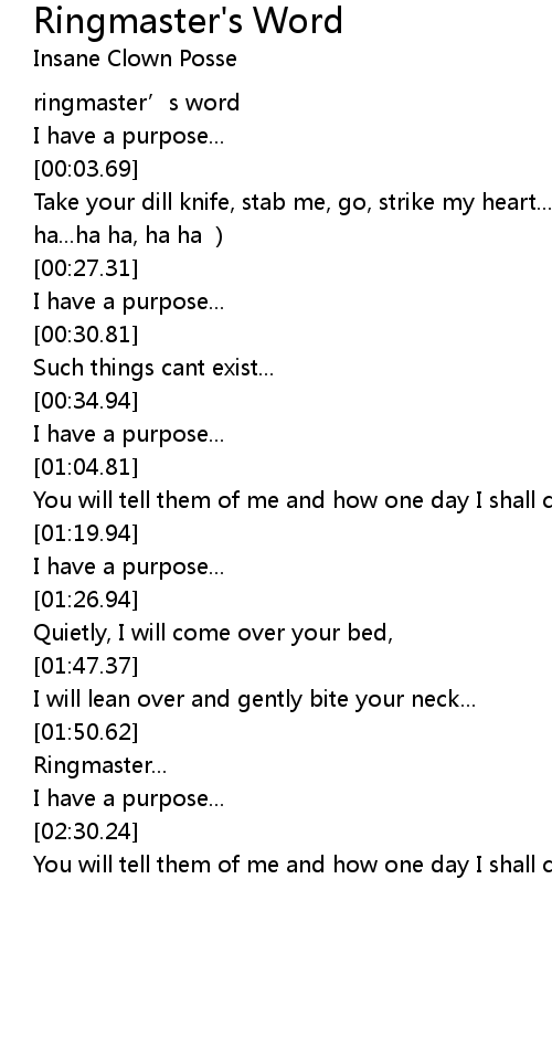 | [00:00.69] | ringmaster’s word |