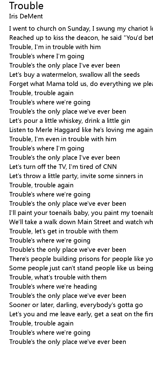 Trouble's the only place I've ever been |