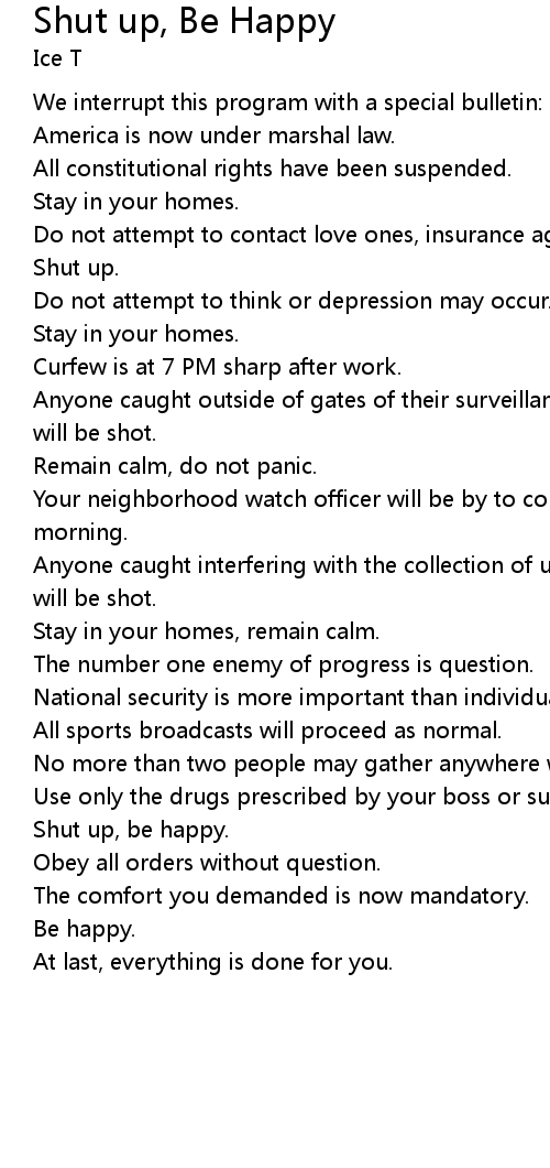 Shut up, be happy. |