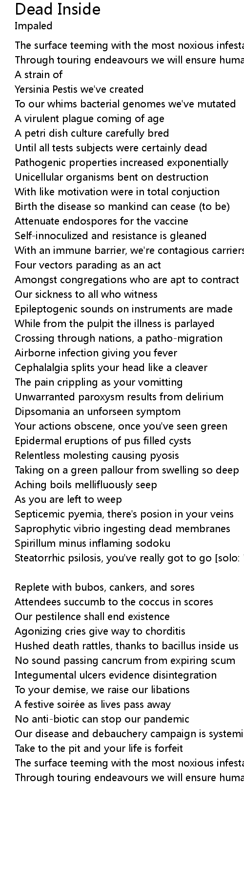| Steatorrhic psilosis, you've really got to go [solo: "Ashes To Ashes, You All Fall Down" by A.S. LaBarre] | |