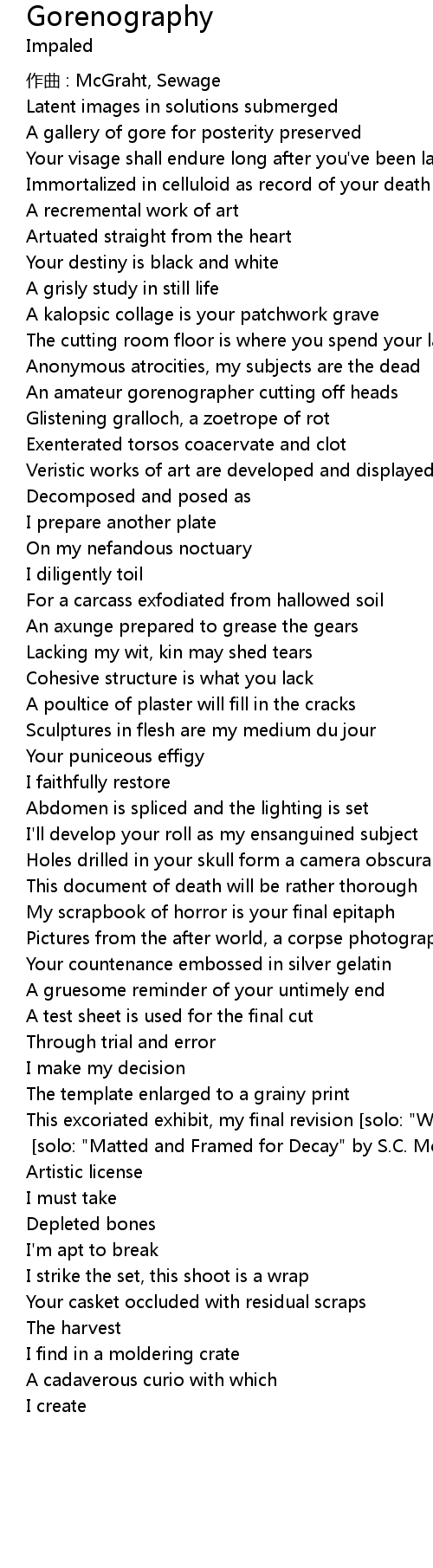 | 歌手 | Impaled |