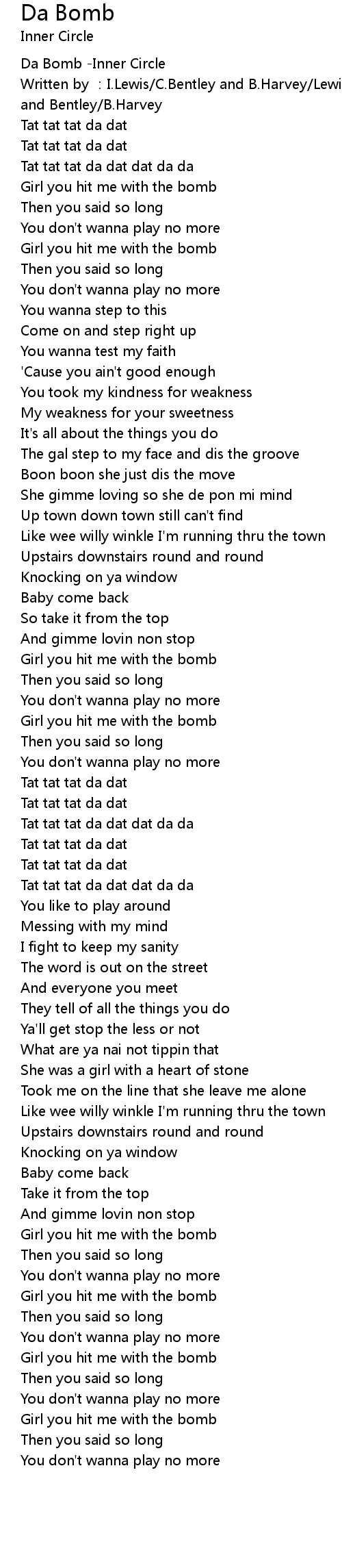 | [03:20.267] | Girl you hit me with the bomb |