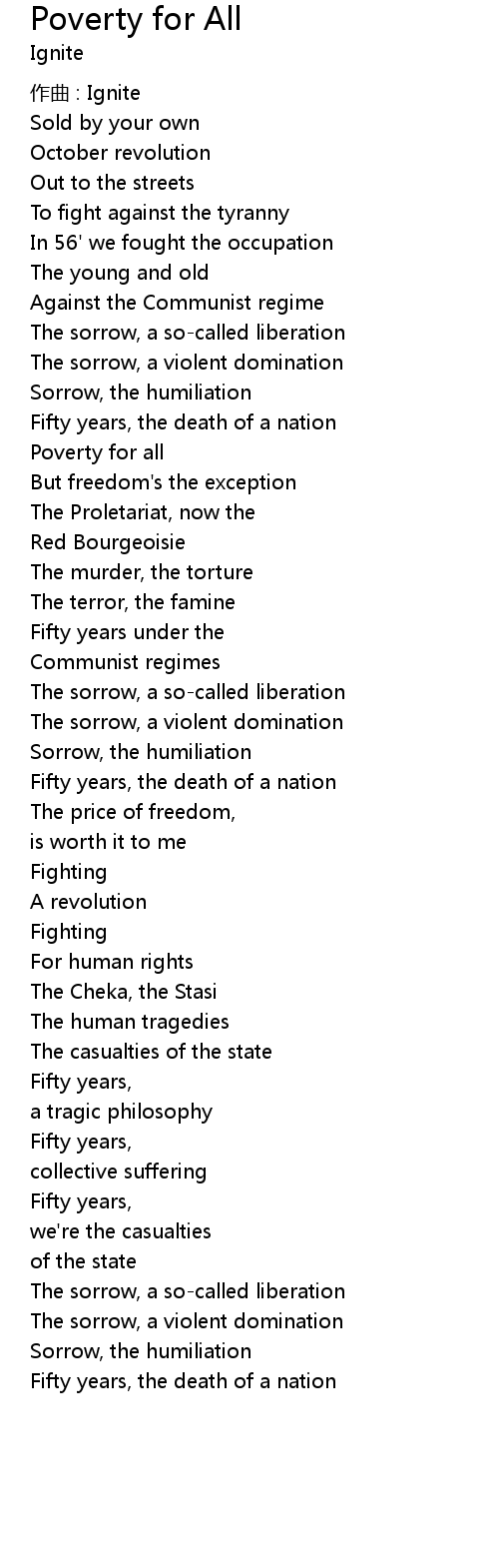 | 歌曲 | Poverty for All |
