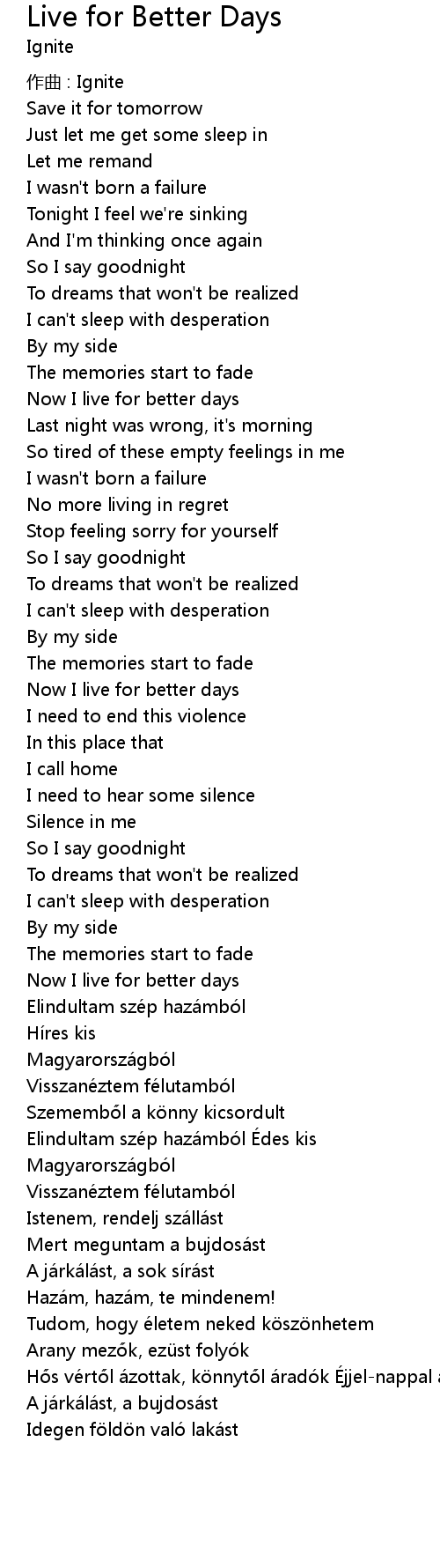 | Now I live for better days | |