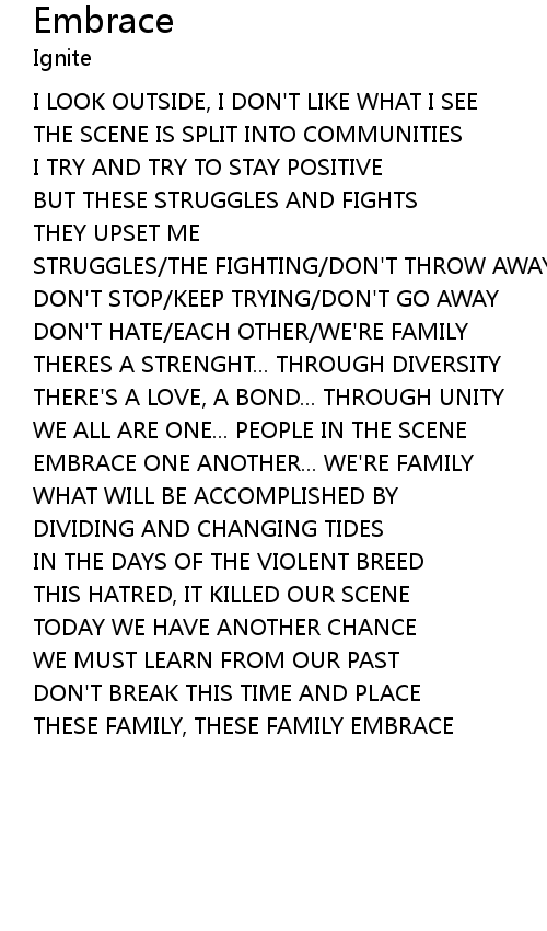 EMBRACE ONE ANOTHER... WE'RE FAMILY