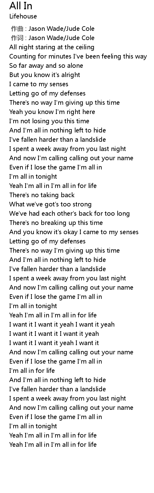 | [03:34.290] | Yeah I' m all in I' m all in for life |