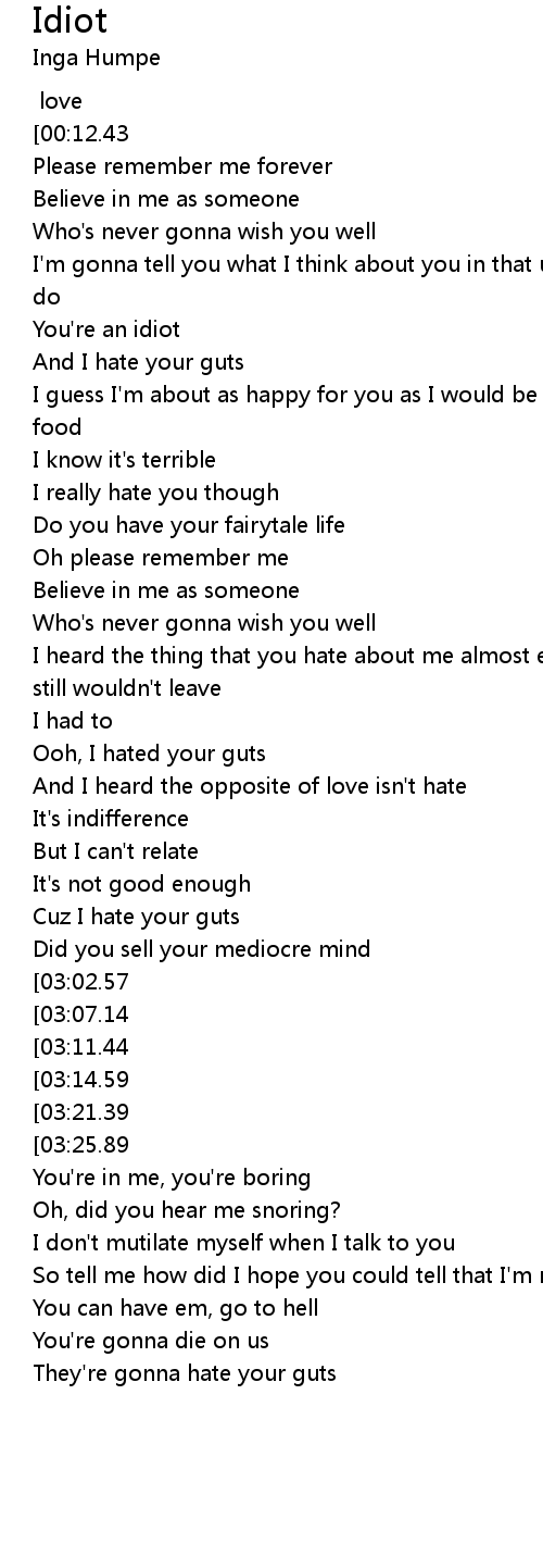 I really hate you though |