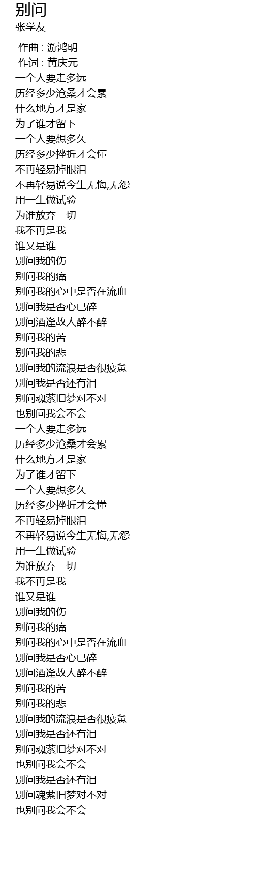 | [01:34.400] | bié wèn wǒ de kǔ |