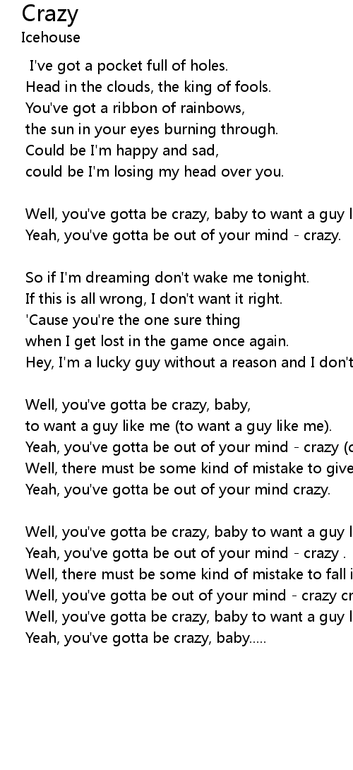 Well, you've gotta be out of your mind - crazy crazy |