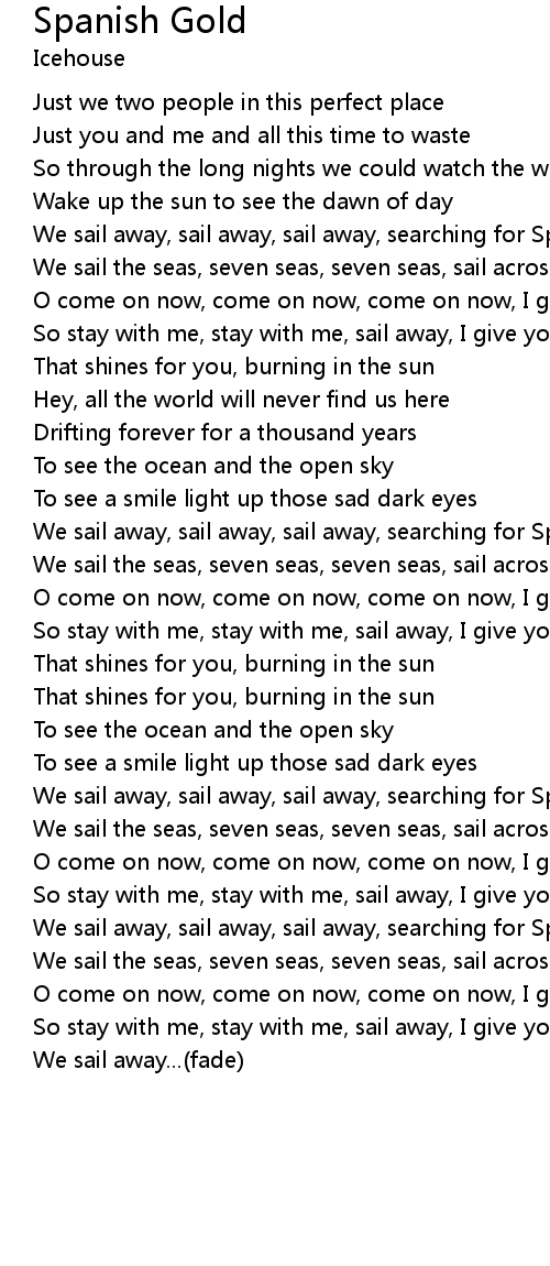 So stay with me, stay with me, sail away, I give you Spanish Gold |