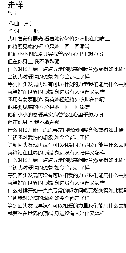 | [00:00.00] | 作曲 : 张宇 |