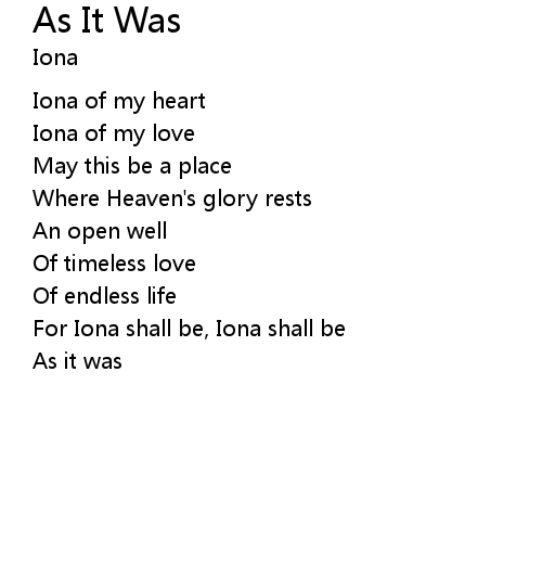 For Iona shall be, Iona shall be