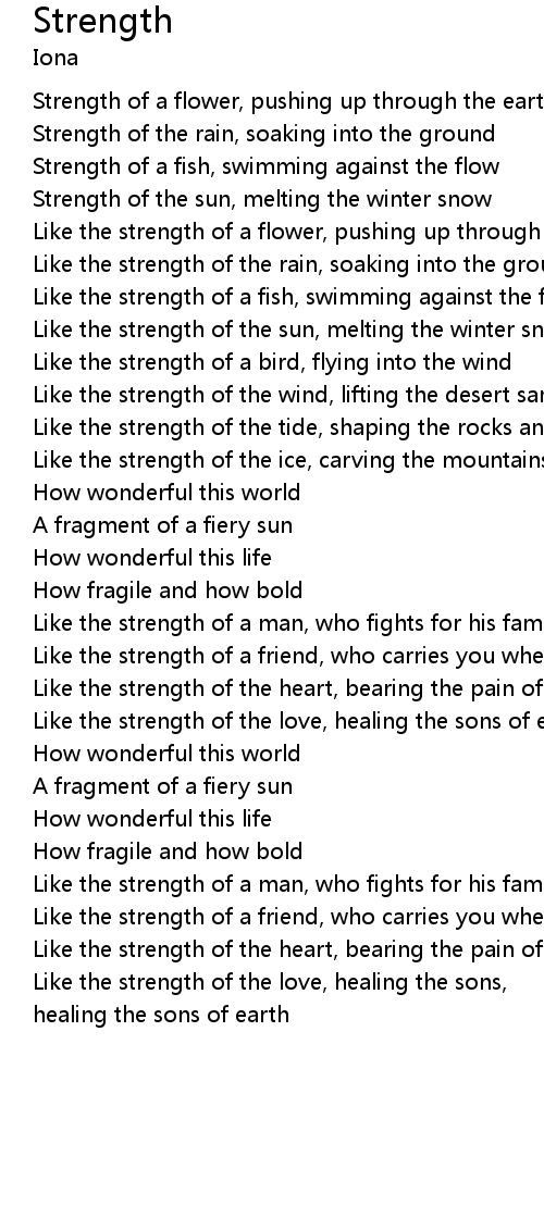 | Like the strength of a friend, who carries you when you’re weak | |